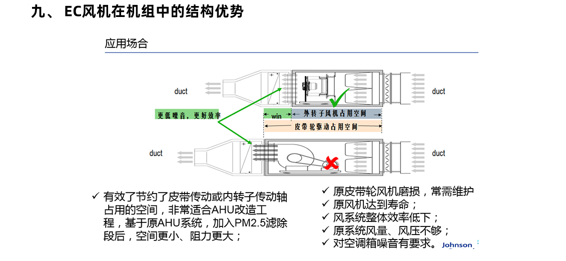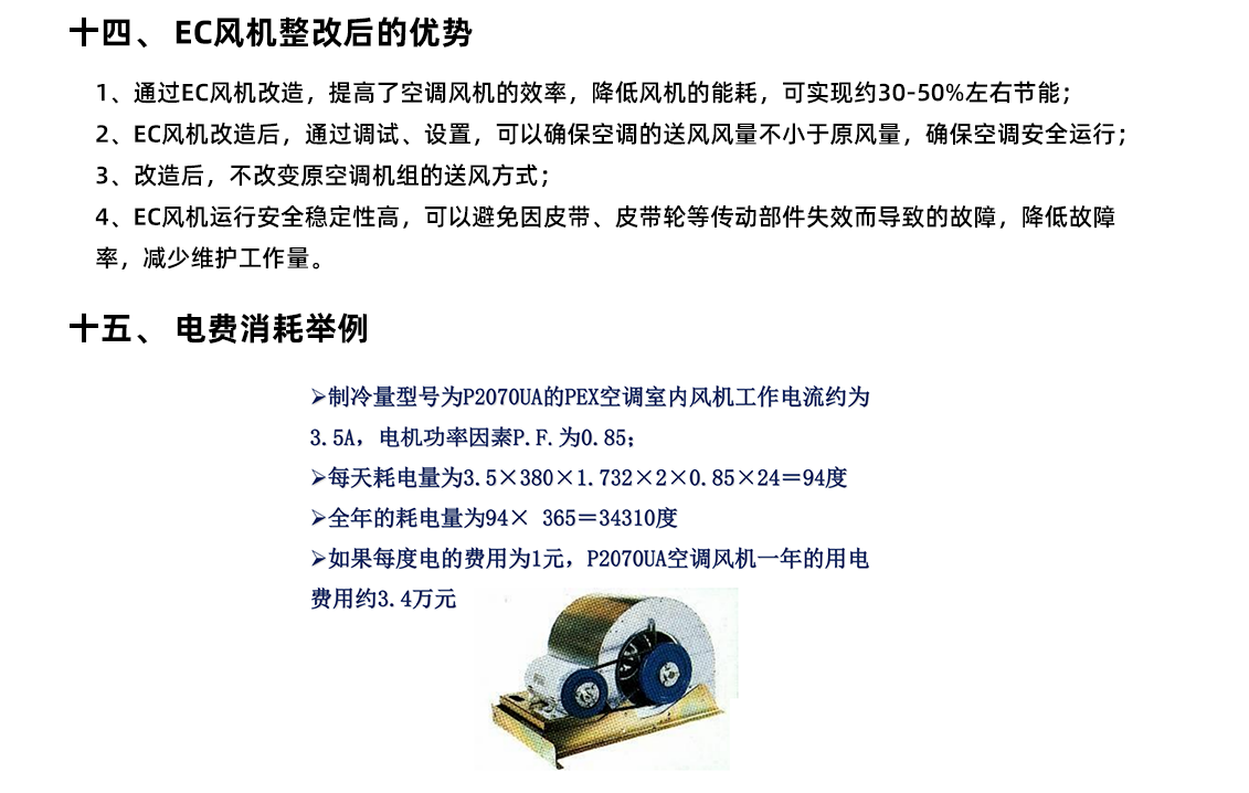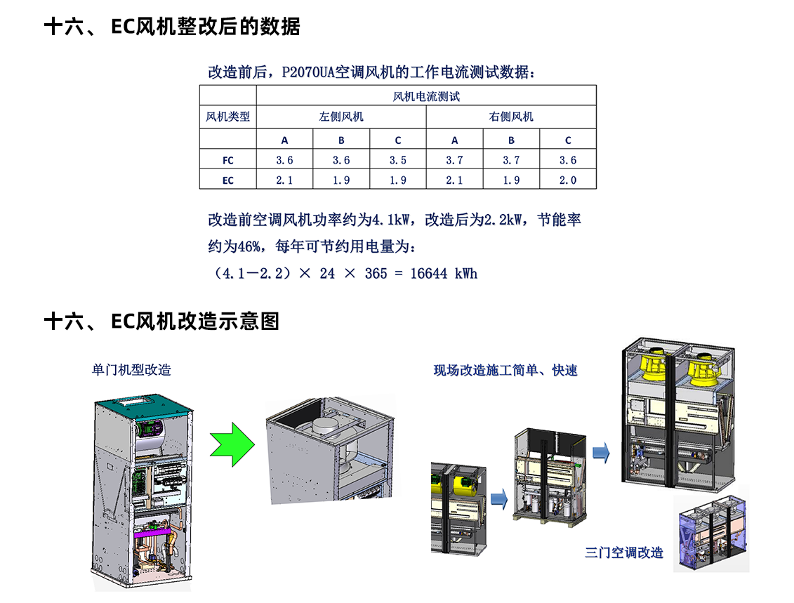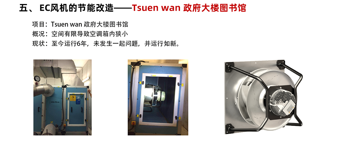 更換風(fēng)機(jī):將現(xiàn)有的皮帶傳動(dòng)式風(fēng)機(jī)全部更換為 EC 風(fēng)機(jī)。