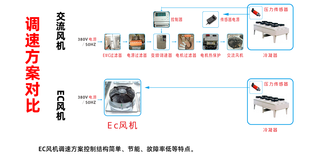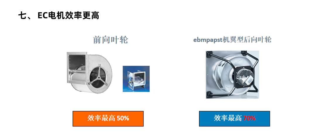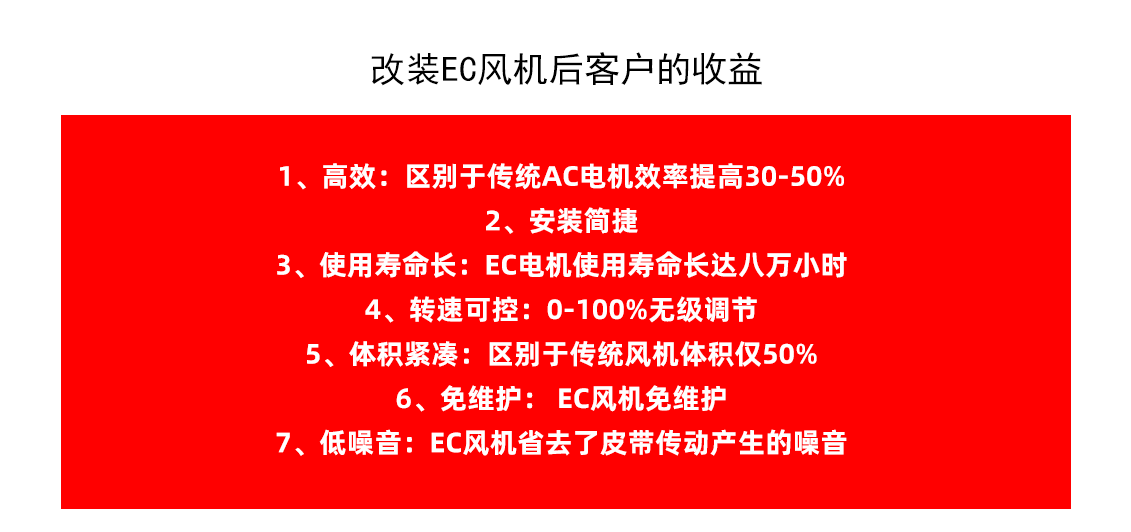 延長設(shè)備壽命:EC風(fēng)機(jī)具有更高的能效和更低的磨損率,能夠延長設(shè)備的使用壽命,降低設(shè)備的維護(hù)成本。